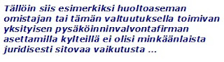 Luulisi, että hyvää perintätapaa koskevat ohjeet laatinut ja saatavien perintää valvova Kuluttajavirasto sekä ammattimaista perintätoimintaa valvova Etelä-Suomen aluehallintovirasto puuttuisivat tämänkaltaiseen toimintaan. Ilmeisesti tiukasti yhdestä perspektiivistä tarkastellen on vaikea hahmottaa kokonaisuuksia. Joka tapauksessa, jos joku kunnianhimoinen syyttäjä viitsisi tähän asiaan perehtyä ja ottaisi sen hoitaakseen, niin edellä kuvattua menettelyä maksusaataviensa perinnässä noudattavien parkkisakkofirmojen johtajat olisivat kyllä syytteen ja vankilatuomion vaarassa, ja tämä vaara olisi hyvin todellinen.